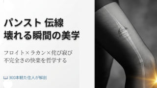 パンスト 伝線の快楽を、フロイトの破壊衝動、ラカンの物体a、日本の侘び寂びから徹底解剖。なぜ伝線に興奮するのか?300本観た住人が、壊れる瞬間の美学を哲学的に分析。故意の伝線、固定バイブ、おすすめ作品6選も紹介。(114文字)
